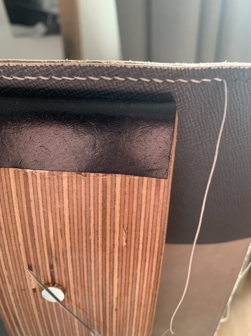 Sewing a cover for a Moleskine A6 book, using grey leather with silver grey thread. Part of the Fattoad Press custom packages.